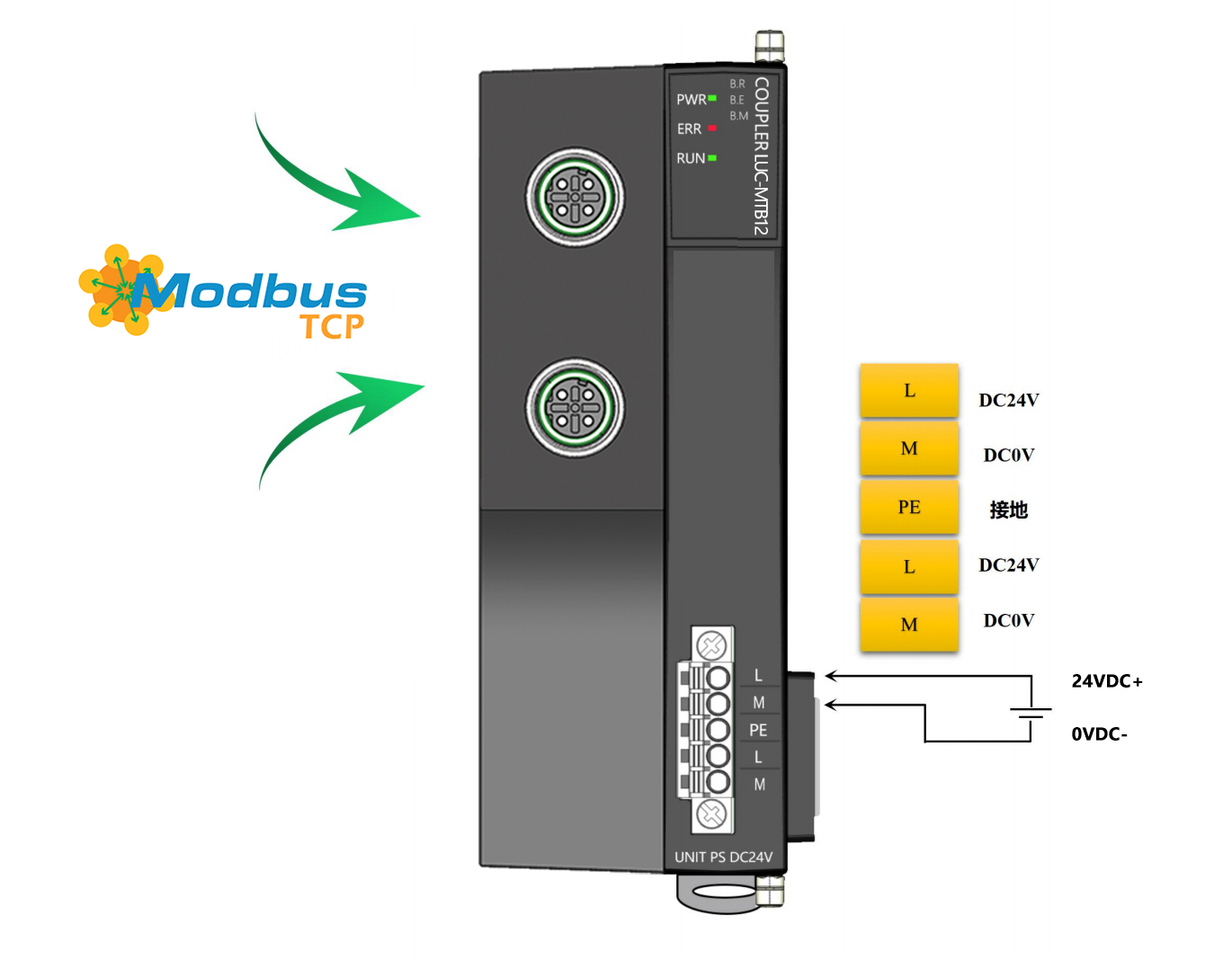 薄片型多功能分布式I/O,MODBUS TCP耦合器,2xM12,可級聯(lián),可擴展32個模塊,24VDC